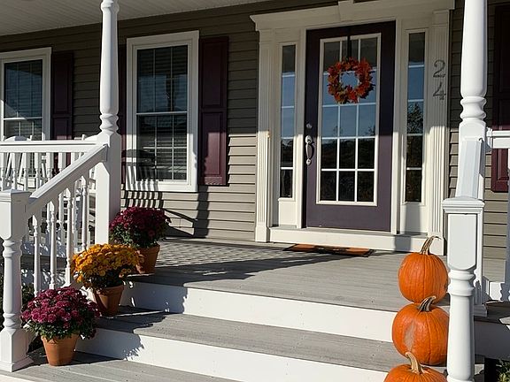 Ready Now! 4BR/2.5Bth Colonial in desirable Rutland neighborhood is waiting for you - picture morning coffee or relaxing evenings on your Farmer's Porch - flexible floor plan offer vaulted ceiling Great Room with corner gas fireplace, Living Room/Office, Dining Room and Eat-In-Kitchen with center island and sliders to private patio area. The Vaulted Ceiling Master En Suite offers Walk-In Closet and Full Bath. First Floor Laundry for convenience, warm Hardwood flooring in some rooms, landscaped yard with irrigation system - turn key - Welcome Home!