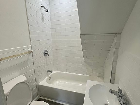 Brand new beautiful 2 bed apt on the 2nd floor of a house. The house has been completely renovated! Nice size kitchen, new stove, New floors throughout. Modern bathroom! Washer and Dryer in unit is negotiable if you want it installed prior/during move in. 4 mins from public transportation. (Not de-leaded) Parking fee, First and Last. Available today. (photos are digitally staged)