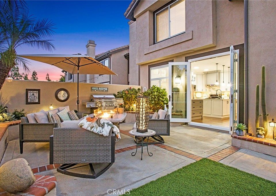 Incredible opportunity with this impeccably maintained & recently upgraded 'end unit' 3 bedroom, 2.5 bath (approx 1900 sqft) residence in the highly sought after community of Cantora, Aliso Viejo.First time offered to the market, the original owners have lovingly created a home that blends modern style living with comfort & functionality. This floorplan creates a light & bright, & open & spacious main floor with open plan formal & informal living & dining spaces. A beautifully remodeled kitchen(2022) is a chef’s dream with Cambria quartz countertops, abundant soft-close cabinetry, pull-out shelving, matching stainless steel appliances, a matching Cambria quartz island with additional seating options. Contiguous to the kitchen is the family living area with stacked stone gas fireplace & French doors that flow out to the ‘piece de resistance’–the fabulous rear yard! One of the largest in the community, the backyard is afforded the feeling of an abundance space being contiguous to an "association maintained" park area. A private oasis with panoramic views, generous entertaining space & water saving artificial turf installed 2019. Enjoy year-round fresh herbs & vegetables from raised ‘potager’ garden beds, with vertical trellis, raised flower beds & custom enclosed stucco shed. Upstairs, the stairwell & hallway feature custom raised-panel wainscoting, & a spacious loft adds approx 180 sqft of flexible living space as a home office/ workout space or den. Fully remodeled in 2025 the primary bedroom & bathroom suite include new cabinetry, quartz countertop, tile flooring & shower, updated plumbing fixtures,bedroom flooring & fresh paint. The family bathroom has been tastefully updated with remodeled shower/tub & shiplap paneled wall. Secondary bedrooms feature custom shiplap accent walls,ceiling fans, & 1 bedroom features a deluxe closet organizer with ‘barn style’ doors. Additional features include community-wide PEX re-piping(2016), direct access 2 car garage with new door opener & spring, custom cabinets, ChargePoint EV charger, front & side yard/common area landscaping(2025). Nearby Foxborough Charter School & National Blue Ribbon’ awarded Aliso Viejo High School. Outstanding proximity to Aliso Viejo Town Center with retail and entertainment complete with movie theatres, restaurants, Ralph’s, Trader Joes & newly opened 99 Ranch Market, nearby walking trails and parks, & minutes away to the 5 freeway & 73 Tollway. Don’t miss this rare opportunity!!