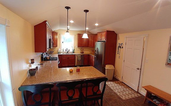 Perfect location for an in-town home! This remodeled 3 bed 2 bath home is located within a block of the elementary school, middle school, and hospital. And only 3 blocks to Main St. yet is quiet and peaceful. It features a brand new addition which houses a completely new kitchen with stainless appliances, granite counter-tops, vaulted ceiling with recessed lighting, and a mudroom entrance from outside. There is an updated full bath on the 1st floor for convenience as well as a laundry room. The dining room and living room have beautiful wooden floors and plenty of space. The master bedroom is spacious as well and there is a new full bath upstairs. The basement has a cement floor and newer heating system. In the summer enjoy the peaceful backyard and the large wrap-around deck which comfortably fits outside dining activities. Call for a showing today!