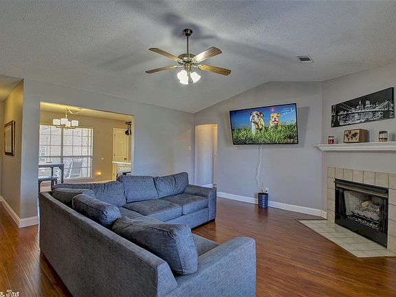 Beautiful one level home w/split floor plan in great location! Covered front porch. Vaulted ceiling in living room and Gas log FP. Hard surface flooring throughout. Two BRs sep. from Mst BR. Master BR is spacious w/great en suite bath; Walk in shower, jacuzzi tub, large vanity and his/her walk in closets. Large patio and flat fenced in yard. Storage shed. Extra storage in garage. Hand scrapped wood-like flooring <5 years old. New HWH. New Garage door. HVAC 09, Roof 2011. Move in ready! Come see today!