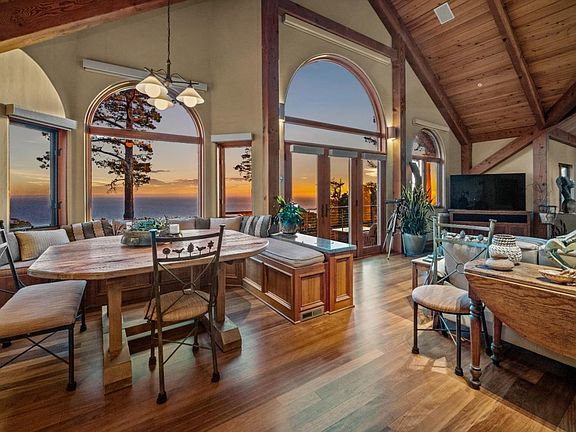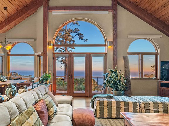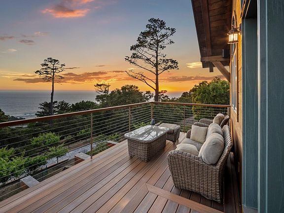 Welcome to 24 Mentone, where panoramic ocean views meet a beautiful mountain setting, all just 10 minutes from downtown Carmel. Every room in this custom-designed home offers breathtaking and inspiring views. The indoor-outdoor living experience is enhanced by multiple decks and patios, ideal for enjoying early morning coffee or evening sunsets over the Pacific. As one of the Monterey Peninsula's first timber frame designs, this property features unique architectural interest and provides a warm, inviting environment perfect for gathering with friends and family. The two-sided stone fireplace will warm the coolest nights. The main house includes 4 bedrooms and 2.5 bathrooms. The open gourmet kitchen is the heart of the home and an entertainer's dream, spacious enough for multiple chefs to cook while others enjoy the expansive views and open-concept living area. The 3.1-acre property features a fully functional 1-bedroom, 1-bathroom ADU, private beach access, hiking trails, a koi pond, a bocce court, and more. Whether you're observing wildlife in Mal Paso Canyon or watching whales migrate across the horizon, 24 Mentone Drive offers endless entertainment and functionality.