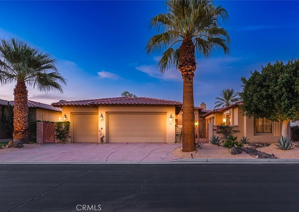 Welcome to your dream home, where contemporary charm meets modern luxury in a vibrant, gated community. Nestled between the best of Palm Desert and Palm Springs, this single-story gem offers a small-town feel with big-time amenities. Imagine living in a neighborhood where your neighbors greet you by name, while everything you love about the desert lifestyle is just a short golf cart ride away! Step inside to discover an elegant space that has been meticulously updated and FULLY Furnished just. The new tile flooring flows seamlessly throughout the open floor plan, complemented by custom window coverings that add a designer touch. The heart of the home is the remodeled kitchen, featuring sleek quartz countertops, brand-new stainless steel appliances, and ample storage—perfect for hosting friends and family. All three bathrooms have been beautifully remodeled, and with new lighting fixtures and ceiling fans throughout, every corner of this home shines with modern elegance. Energy efficiency is top-notch, thanks to paid-off solar panels, dual-pane windows, and roller shield storm covers, ensuring comfort year-round with virtually no electricity costs. The spacious living areas lead through multiple double doors to a large covered patio that invites you to relax and enjoy the stunning views. Overlooking your private pool, spa, and the rolling greens of the world-renowned Desert Willow Golf Course, this backyard is an entertainer's dream. Whether you're hosting a summer barbecue or sipping your morning coffee, you'll love having front-row seats to the beauty and tranquility of desert living. Golf enthusiasts, rejoice! With 37 courses in the area—21 private and 14 public—you’ll never run out of places to play. Prefer something other than golf? You're minutes away from the Desert Surf Resort, El Paseo’s iconic shopping and dining, the Living Desert Zoo, the BNP Tennis Open, and outdoor adventures like hiking, tennis, pickleball, and biking. Plus, with grocery stores, boutique shopping, and cafes all within walking distance, convenience is truly at your doorstep. This home is not just a residence, it's a lifestyle. Experience the perfect balance of luxury and location in one of the desert’s most coveted communities. Make this oasis yours today!