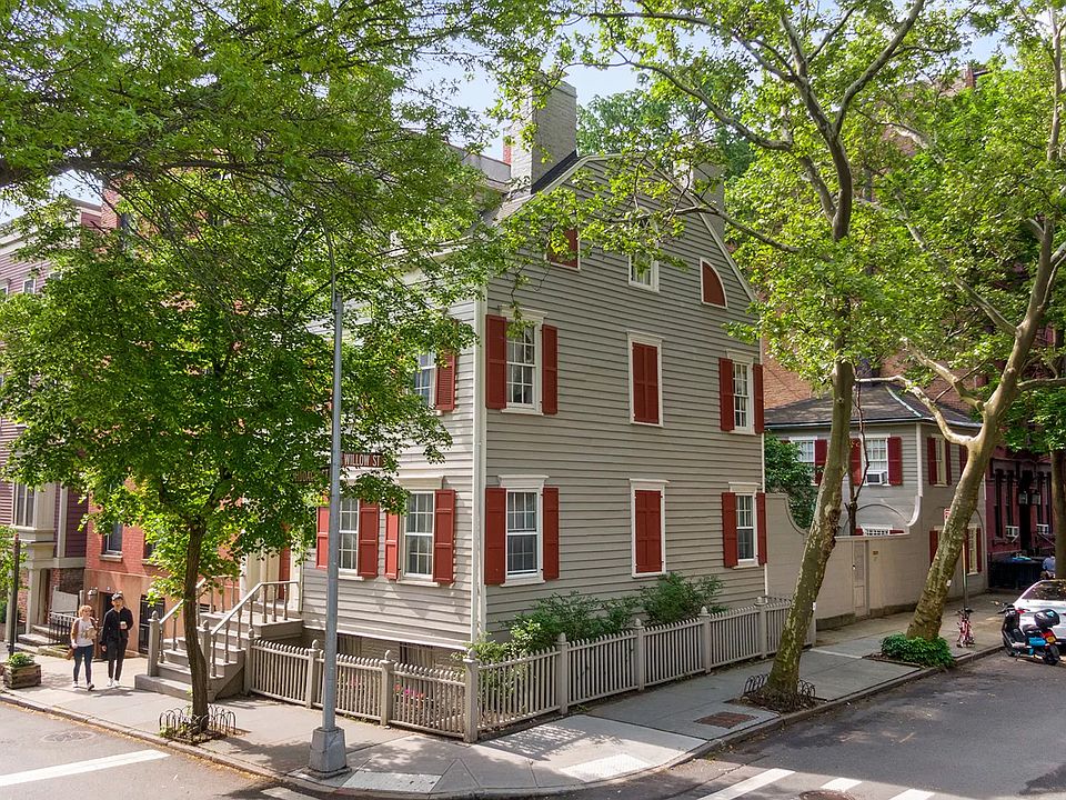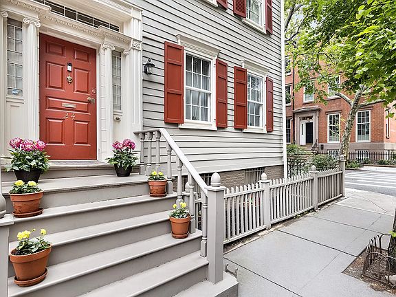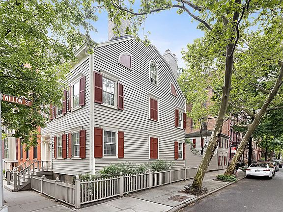 24 Middagh St is one of Brooklyn Heights Historic Districts' oldest homes built between 1790 - 1829, in the Federal style. Architect William F. Schorn of Manhattan added a second and separate dwelling at the rear of the property in 1938, previously a carriage house. The convenient gate to Willow St was also added at this time. Uniquely situated in the North Heights on the leafy desirable corner of Middagh and Willow Streets, just a stone's throw from the lovely Brooklyn Heights Promenade, the award-winning Brooklyn Bridge Park, and a short commute to Downtown Manhattan, the main house and carriage house sit on one lot joined by a private and quaint courtyard. The Federal Style main house, remodeled by Architect Sidney Daub in 1936 for its newly-wed buyers added a picket fence, enlarged the attic windows on the rear and added shutters to all the facades. These changes remain today. The main house stands 4 stories tall and includes five bedrooms, a double parlor with twin wood-burning fireplaces, a lower eat-in kitchen and a formal dining room with an amazing 3 exposures for natural light and air. A cozy and very private walled garden with gate access to Willow St is convenient for gardeners and for storing all manner of wheeled modes of transportation such as bikes and scooters. It's also a lovely place to entertain friends under a tranquil leafy canopy. The rear carriage house is a 2-story guest house or extended family home with 2 bedrooms, one and a half baths, a wood-burning fireplace and additional kitchen. Original details include Federal-style doorways with colonnettes, quarter-round attic windows, top floor dormer windows, 5 fireplaces with original wooden mantels, ornate moldings and stunning wide-pine plank solid wooden flooring throughout. This is a rare opportunity to own your own private piece of history in Brooklyn Heights with a rare and convenient corner location, and two buildings. Showings by appointment only - no open houses will be posted.