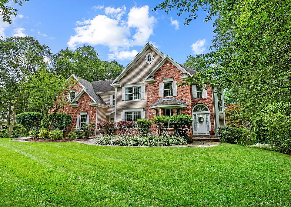 Stately and stunning brick colonial located in beautiful Farmington, CT. This elegant home showcases exceptional detail throughout, including extensive crown molding and a dramatic two-story foyer with a wall of windows and curved staircase. The formal dining room features wainscoting, and the formal living room includes a classic bay window. Gleaming hardwood floors run throughout the main level. The gourmet kitchen is a chef's dream, complete with a Sub-Zero fridge, large island, built-ins with decorative columns, and is open to the sunlit family room with a gas fireplace and access to the deck. Step outside to a large, private, flat backyard with an inground pool and brick patio-perfect for entertaining. A second staircase off the kitchen leads to five spacious bedrooms upstairs. The primary suite offers a luxurious ensuite bath, and three of the four additional bedrooms also have private bathrooms. The second floor also features a loft ideal for a media room or sitting area, a laundry room with cabinetry, and ample storage. The lower level is partially finished and ideal for a gym, rec room, or both. Professionally landscaped with timeless curb appeal-this home truly has it all.