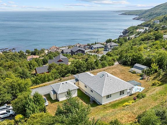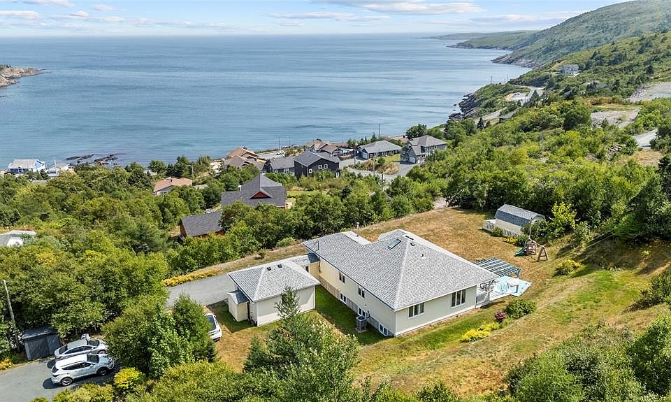 Imagine waking up each morning to whales breaching, fishing boats heading out, and the sun rising over the Atlantic — all without leaving your living room. At 24 Motion Bay Road Ext, that dream becomes your every day. Perched high on a private 1.2-acre lot, this custom-built bungalow offers what so many hope to find but rarely do: absolute privacy paired with the most spectacular panoramic ocean views you’ll find anywhere near St. John’s. With over 3,000 sq. ft. of thoughtfully designed living space, this home is as comfortable as it is breathtaking. A bright living and dining area frames the ocean like a moving painting, while a spacious kitchen with island and cabinetry for days flows into a cozy family room that opens onto a semi-covered deck — the perfect spot for summer evenings watching the sea. The main floor also features a serene primary suite with ensuite, two additional bedrooms, a full bath and laundry. Downstairs, the fully developed basement offers even more: a rec room, full bath, nanny suite, and two versatile rooms for guests, hobbies, or offices. With 5 bedrooms and 3 bathrooms in total, there’s room for the whole family to visit and stay awhile. Practical comforts complete the picture: a fully ducted heat pump for efficiency, municipal water, main floor laundry, heated attached garage, wired shed and pergola. Outside, the property opens directly to nearby trails — perfect for skidoo and ATV adventures — while downtown St. John’s is just 10 minutes away. For anyone who have been looking for the ultimate forever home, this is the one you’ve been waiting for: a private retreat with a million-dollar view, where every day feels like a dream come true.
