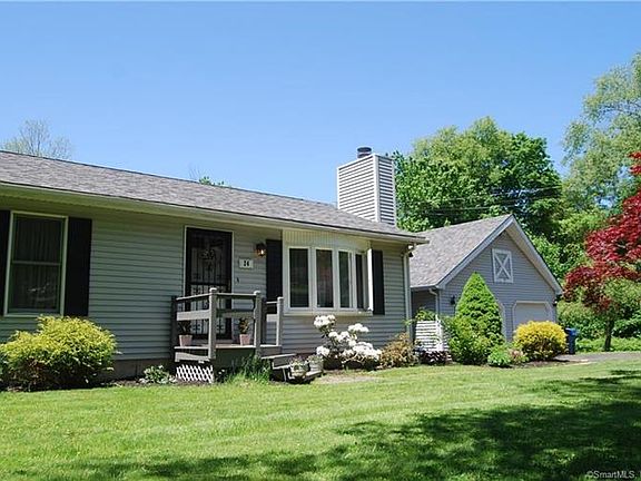 Updated Ranch on park like grounds. This 3 bedroom, 2 full bath home has a master suite, updated kitchen, and bump out dining room. Kitchen has new granite counter tops and butcher block peninsula with stainless steel appliances. Home has central vac and ductless central air that provides cooling and heating along with pellet stove, allowing for great energy efficiency year-round. Wrap around rear deck with retractable awning overlooks large, level, back yard with horseshoe pits, shed, playscape, and multiple fruit trees. Bonus room in lower level provides place for a private bar or the perfect playroom. Easy access to many amenities, short commutes to both UConn and Hartford.