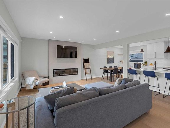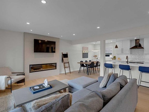 HOME SWEET HOME! Now is your rare opportunity to own a one of a kind bungalow situated in the heart of one of NW Calgary’s most popular and sought-after communities, Collingwood. This EXCEPTIONALLY RENOVATED BUNGALOW offers 4 bedrooms, 2 bathrooms, a FRESHLY UPDATED BASEMENT, 2,255+ SQFT of modern living space throughout, charming curb appeal with an inviting front porch/deck and unbeatable location steps from Nose Hill Park, Confederation Park and Confederation Golf Course. Heading inside you will be impressed by the flawless open concept floor plan with stunning hardwood flooring. The main floor offers a sun-drenched south facing living room with a chic electric fireplace, formal dining area and a modern gourmet chef’s kitchen with stone white quartz countertops, massive island, white panel soft close custom cabinets with black handles, white tiled backsplash and black appliances. Completing the main floor is a bright foyer, 2 generous sized bedrooms and the primary retreat with a walk in closet with built-in shelving and an upgraded 4 piece bathroom with a tiled stand-up shower and relaxing soaker tub. The newly renovated basement offers a living room/recreation room with a gas fireplace, a 4th bedroom with Egress windows, spacious laundry room with additional storage space and another updated 3 piece bathroom with a stand-up shower. UPGRADES include newer furnace, newer hot water tank, newer windows and upgraded city sewage pipes. Outside, you will find a single oversized detached garage with additional driveway parking, front porch with glass railings to enjoy your beautiful summer days, beautifully manicured backyard with a deck, patio stones and mature trees to add to your privacy. You will not find a better location, walking distance to the University of Calgary, Calgary Winter Club, Nosehill Park, Confederation Park, the LRT, shopping, parks, schools, major roadways and other major amenities. MUST VIEW! Book your private viewing of this GEM today!