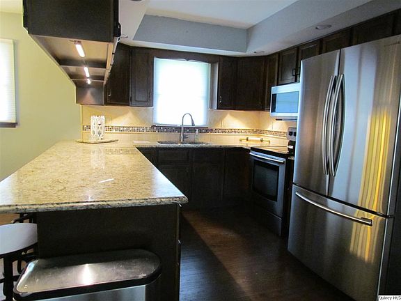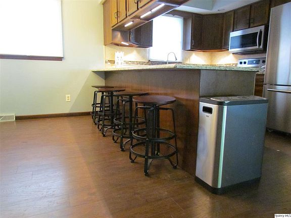 Split level home with vinyl and brick exterior. Attached two car garage with electric opener. Main floor features a kitchen with wooden cabinetry, under cabinet lighting, and granite counter, and a living room. Upper level features three bedrooms and full bath. The lower level includes a family room with wood burning fireplace, den, and bath. The basement is walk out to a patio in the backyard.