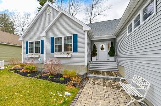 One of the more beautiful homes in the desirable Village at Merrimac. Built in 2016 as part of the 3rd and final phase of this 55+ community. Single level living, this contemporary ranch has hardwood flooring all throughout the open living area beneath a vaulted ceiling. A modern and elegant kitchen with white cabinetry, quartz counters and stainless appliances. Natural light pours in through the windows and oversized glass slider leading to a private composite deck. Sun filled master bedroom with vaulted ceilings, beautiful full bath and deep walk-in closet to go along with 2 more generously sized bedrooms. Large walk-out basement ready to be finished. Attached 2-car garage, central vac, and central AC complete this stunning home. $250 monthly HOA fee which includes snow removal, trash and landscaping. Please explore the Matterport 3D virtual tour before requesting a showing.