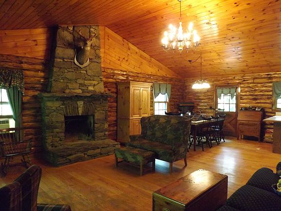 Lovely, charming and cozy open concept log home available in convenient yet private Rutland location. Over 2400 square feet of living space, including the finished walk-out basement with 2 bedrooms, a full bath, family/playroom, and kitchen; perfect for an in-law apartment or set-up for daycare, as it has been used until recently. The main floor has hardwood flooring and a gorgeous wood cathedral ceiling over the living room, dining room, and kitchen. Living room boasts a large and beautiful rustic stone fireplace and hearth. Stunning, renovated large full bath with soapstone sink, tiled shower/tub combo, tons of storage! The tasteful and warm master bedroom has hand crafted wooden shutters on the single and double windows, hardwood floors, and a private dressing room/office space with two spacious closets and natural lighting from another double window. A carpeted 2nd bedroom gives you 4 bedrooms altogether! Full length front porch, back deck, fenced in backyard, extra large driveway!