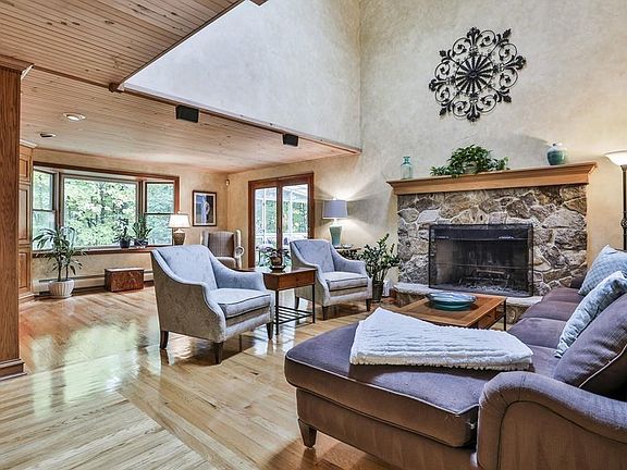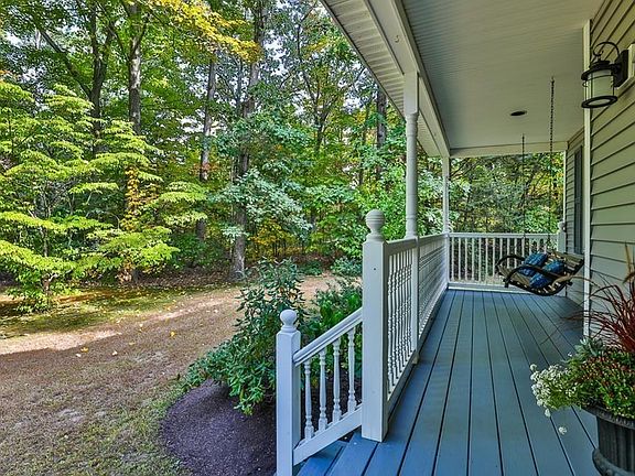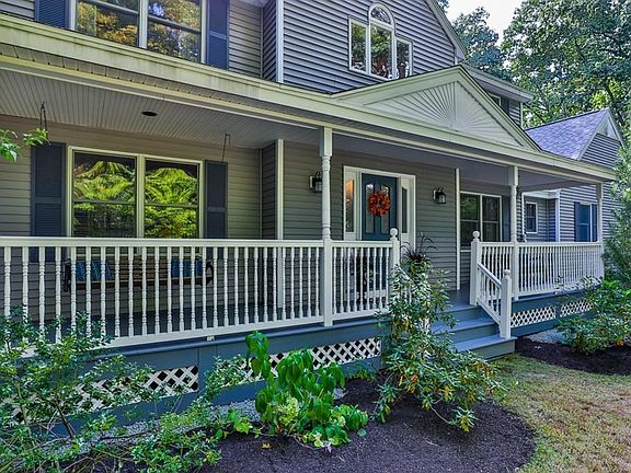 A covered front porch welcomes you into this warm and inviting custom colonial located on one of Georgetown's most scenic roads. The private backyard backs up to conservation land where you can enjoy hiking, kayaking, bird watching & more. A "greenhouse" sunroom brings the outside in and is perfect for relaxing and enjoying all the seasons. The family room boasts a cathedral ceiling, stone fireplace, and hardwood floors. You'll enjoy cooking in the updated kitchen with granite counters and tile backsplash. The private 28' X 12' deck overlooks a serene back yard with beautiful landscaping. Additional features include: hardwood floors in the bedrooms, master bath soaking tub, a finished playroom in the lower level, and an attached two car garage with extra storage in loft above. Worthy to note: Roof replaced in 2019, four bedroom septic system design. Easy access to Rte 95/Rte 97. Showings begin on Friday, Sept. 27
