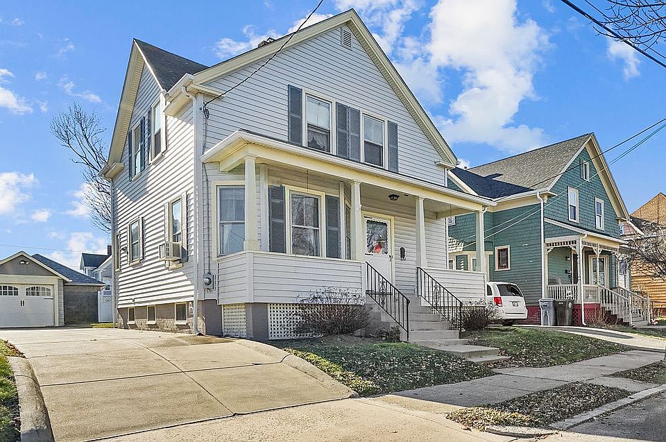 3 Bed 1 and 1/4 baths. (Full upstairs, 1/4 downstairs) Downstairs (1st floor), has living room, parlor, kitchen and laundry room. 3 Beds full bath upstairs. Attic has storage area. In the cellar there is a 'summer kitchen' which includes a sink and a stove. Ideal to finish to inlaw. Full front porch, small back porch and full garage with garage door opener. Concrete patio also in back yard. Beautiful lilac trees in summer. 3/4 fenced in. Sale is subject to partition court order.