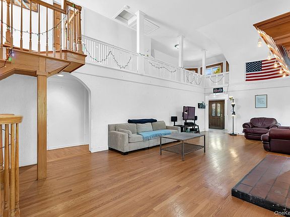 24 Old Knollwood sits proudly on just under a 1/2 acre wooded lot, where the home’s unique stone facade stands out and creates instant curb appeal. Step inside through the foyer into a dramatic double-height living room with a matching height fireplace to create an entertaining space that can be both cozy and grand.