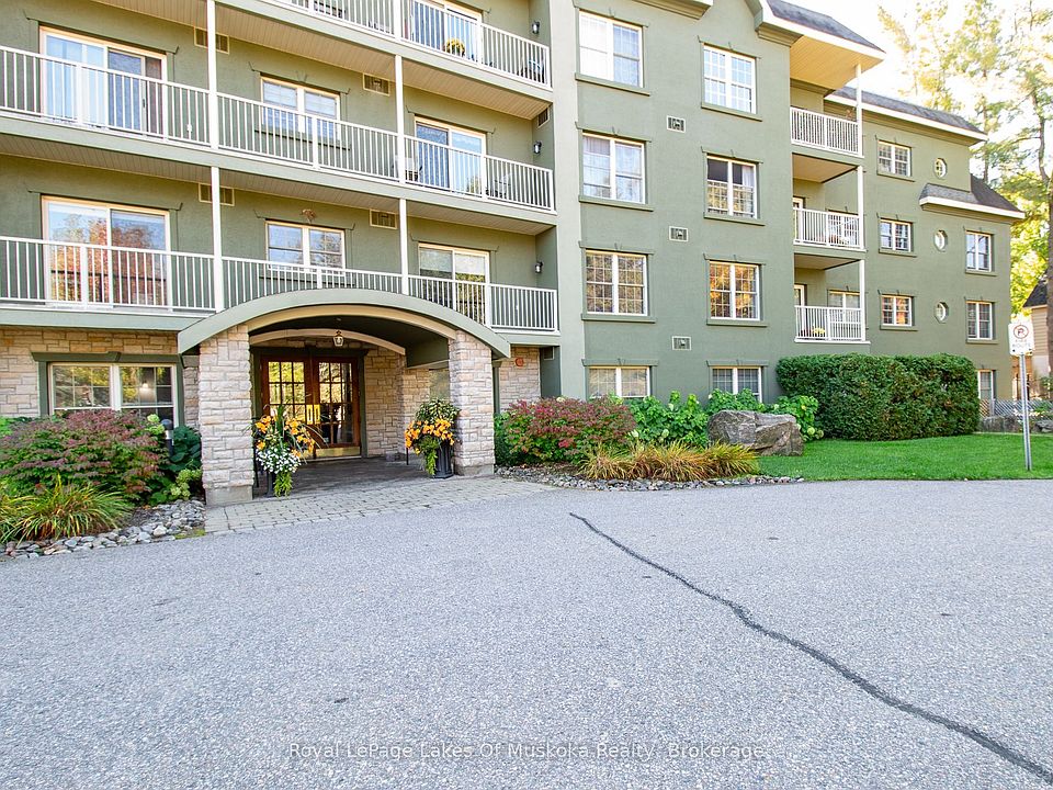 Welcome to this bright and beautifully maintained 2-bedroom plus den, 2-bathroom condo ideally located on the main floor for easy access and convenience. Freshly painted throughout, this unit offers a comfortable and modern layout perfect for retirees, professionals, or anyone looking to enjoy carefree condo living in one of Bracebridges most desirable locations. Step into the open-concept living area that leads out to a private ground-level patio, surrounded by lush privacy shrubs the perfect place to relax with your morning coffee or unwind at the end of the day. The brand new, fully renovated ensuite off the spacious primary bedroom adds a touch of luxury, while the second bathroom features a relaxing jet tub for added comfort. You'll also enjoy a dedicated underground parking space, a secure storage locker, and easy access to the buildings common areas. Located just a short walk to the Falls and downtown Bracebridge, this condo is perfectly positioned to take advantage of the many local shops, restaurants, and year-round events that make this community so special. Enjoy the best of Muskoka living comfort, convenience, and community all in one perfect package.