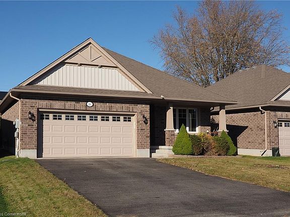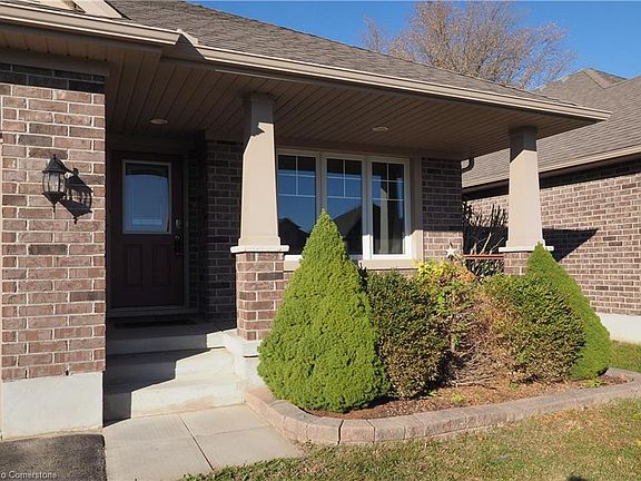 Welcome to this charming 2+1 bedroom bungalow, ideally situated in North Tillsonburg, ON—a fantastic spot for commuters and families alike. Upon entering, you'll be greeted by a foyer with elegant coffered ceilings and durable hardwood/ceramic flooring, offering both style and easy maintenance. The open-concept design seamlessly connects the living room and kitchen, creating a welcoming space for family gatherings. The kitchen boasts ample cabinetry, a large island perfect for casual dining, and a double-door pantry for extra storage. The primary bedroom features a spacious walk-in closet, with convenient main-floor laundry located nearby. The main level is complete with a second bedroom and 1.5 bathrooms. The finished lower level offers additional living space, including an office area, a generous recreation room, and a third bedroom with its own 3-piece bathroom. Step outside to enjoy a lovely covered deck and beautifully landscaped gardens, perfect for outdoor relaxation. Or start your day on the charming front porch with a morning cup of tea. A SINGLE FOR THE PRICE OF A TOWNHOUSE.