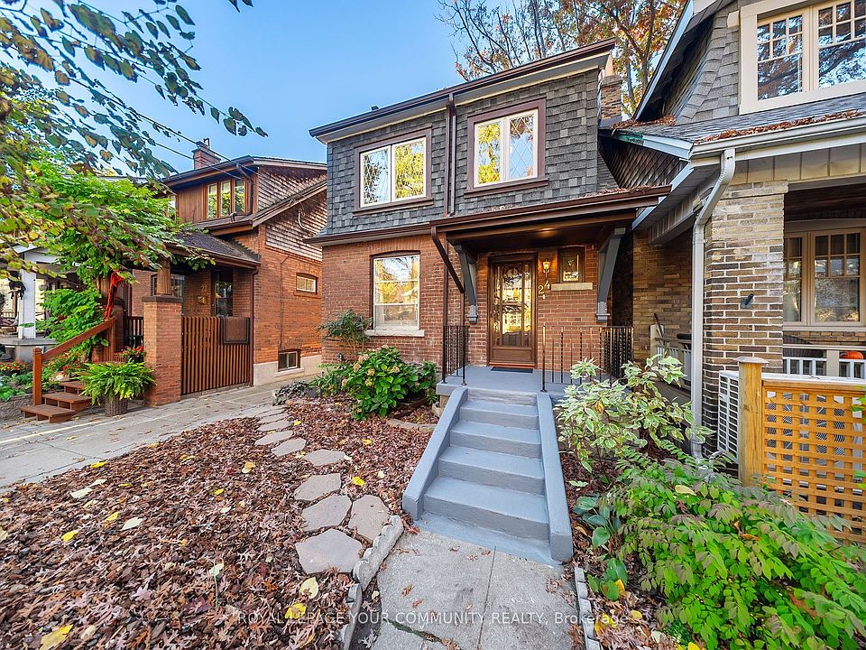 A rare detached 3-bedroom, 3-bathroom home, surrounded by century-old oak trees, is located on a prestigious, family-friendly street in Toronto's sought-after East End Danforth community. This residence blends timeless character with modern comfort, offering the perfect balance of charm and functionality. Set on a large lot with a detached garage and a backyard oasis, this home provides an ideal setting for entertaining or peaceful outdoor living. Inside, you'll find a bright and inviting layout showcasing original millwork, moldings, and hardwood floors that highlight the home's enduring charm. The newly renovated kitchen features quartz countertops, modern cabinetry, and stylish finishes, while the updated bathroom includes a marble shower/bath and quartz vanity, adding a touch of everyday luxury. The living room features an original stone wood-burning fireplace, currently fitted with an electrical insert for cozy gatherings, yet easily converted back to a traditional wood-burning fireplace. Freshly painted throughout with updated electrical, this home is move-in ready yet still offers the opportunity to personalize. The renovated finished basement includes a separate rear walk up and a roughed-in kitchen, providing potential for an in-law suite or supplemental income. Ideally located near local parks, top-rated schools, and prime transit access with Woodbine Subway and Danforth GO Station just a short walk away. This property is steps from the Danforth's vibrant cafés, shops, and restaurants. Perfect blend of heritage charm, modern upgrades, and an unbeatable location - truly the family home you've been waiting for!