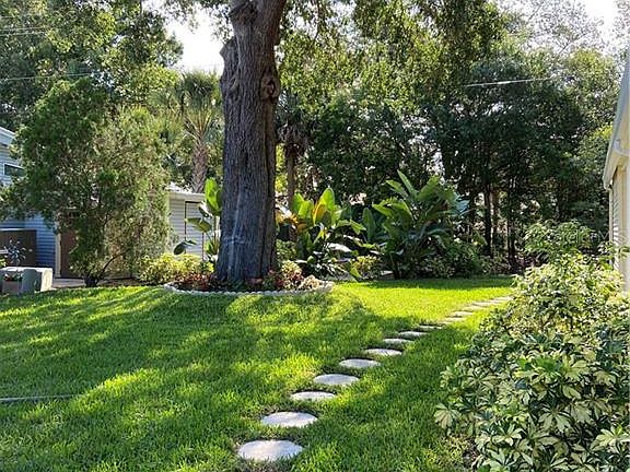 This manufactured home has a wonderful floor plan. It starts with a screened porch. This porch has French doors to the living room and to the eat in kitchen. The living room is open to the kitchen with a wonderful bar area. The bar and the kitchen feature beautiful granite counters. The kitchen is light and bright with a large eating area. All of the cabinets have been replaced. There are stainless steel appliances in the kitchen. Storage is ample in this home. There is a small office area with two nice closets. One has shelves for a great pantry. Both bedrooms have walk in closets. There are two bathrooms that are totally redone. There is a laundry closet off the master bathroom. The yard is very large and has a beautiful parklike feel. Everything in this home has been totally redone for a move in ready home. The storage shed is oversized and has laundry hook ups is someone prefers the laundry there. The inside laundry could be another great closet. The lawn has been completely resodded and is growing beautifully. Spotless and clean.... just enjoy. Many nearby restaurants, a community pool, and 15 minutes to the beach!
