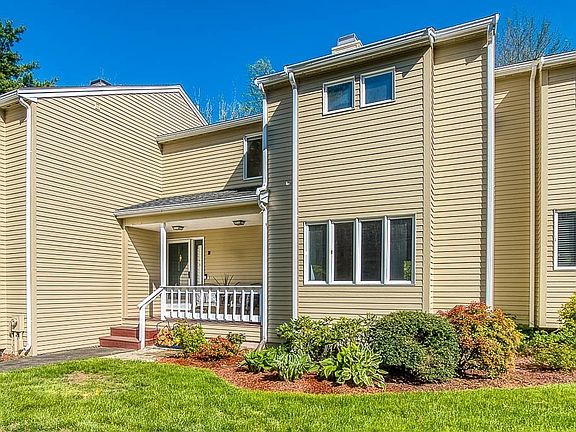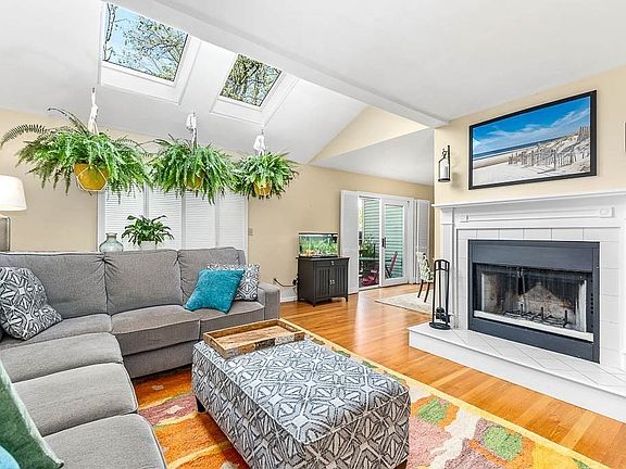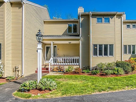 Stunning, sun-drenched 2 bedroom, 2 bath, 3 level, unit town home with a spacious floor plan. This home offers gleaming hardwood floors throughout, central air, two deeded parking spots, an abundance of storage and many updates. The 1st floor features a vaulted ceiling living room with gas fireplace and skylights, a beautiful eat-in kitchen, guest bath and a dining room with a sliding door leading to the serene rear deck overlooking the back yard. The 2nd level offers a large main bedroom with double closets, 1 additional bedroom with ample closet space, full bath and a conveniently located laundry area. This unit truly lives like a single family while enjoying the freedom that maintenance free living provides.