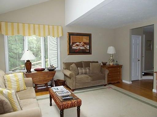 Move-in ready Stetson Village, a bright and sunny 3 bedroom end unit, freshly painted, in pristine condition. This spacious 3-level home of over 2500 sq ft has been lovingly maintained and features newer heating and cooling systems, new w/w/carpeting and gleaming wood floors, The first level consists of a formal dining area, f/p living room both with sliders to a private deck overlooking a wooded setting and sounds of Mother Brook, a sun-filled eat-in kitchen with updated appliances and picture window and, a half bath. The master bedroom with skylights, fireplace and full bath, two more bedrooms and another full bath complete the second level. The lower level family room with additional space is perfect for an office or even another bedroom. Lots of built in storage and closet space throughout. Small 3 owner condo association...Close to all major routes and commuter rail. Patriot Place just minutes away ....This rare offering will not last. Open house Sunday, June 7th from 12-