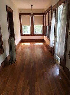 Comfortable, clean 6+ room Bungalow located on a quiet side street and within walking distance to town, schools, park, library, shopping, and restaurants. First floor offers updated kitchen with pantry and lots of cabinets, two good size bedrooms, dining with built-in, living room and front enclosed porch. Second floor offers great storage and an additional bedroom. Basement with laundry hook-ups and bath. Beautiful hardwood floors, lots of wood detail, large yard, and off street parking. Available now!