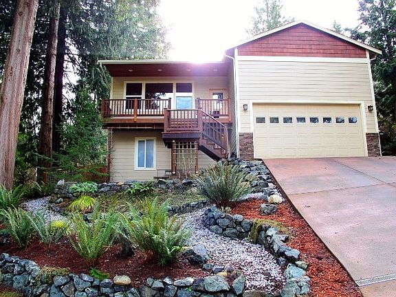 Beautifully maintained Craftsman style home with 3 bedrooms (+ bonus loft) and 2 full bathrooms. Built in 2006, this cozy house is nestled in a quaint and enchanting setting, surrounded by nature (2 green belts), with lots of privacy. An open layout connects the family room/office, kitchen, dining, and living areas into a cohesive space; giving the home a modern feel. Features solid Brazilian Cherrywood floors, lofty ceilings, expansive kitchen with stainless steel appliances, propane stove, extra prep sink built into a large island, washer and dryer, and wood stove. Master bedroom suite has 2 adjacent closets, large master bathroom with 2 sinks, separate shower, and spa-like jetted tub. The 12x20 loft above the garage is great as a craft room, storage room, or teen’s bedroom. Finished daylight-basement (500 sq ft) is fashioned as a workshop with its own front door and attached unfinished basement (1000 sq ft) for extra storage. Lengthy dog-run alongside the house has ample space for a large dog, or it can also be used as a fenced-in garden area. The backyard has a large deck with a dreamy hot tub under the stars. The property also includes extra off-street parking.