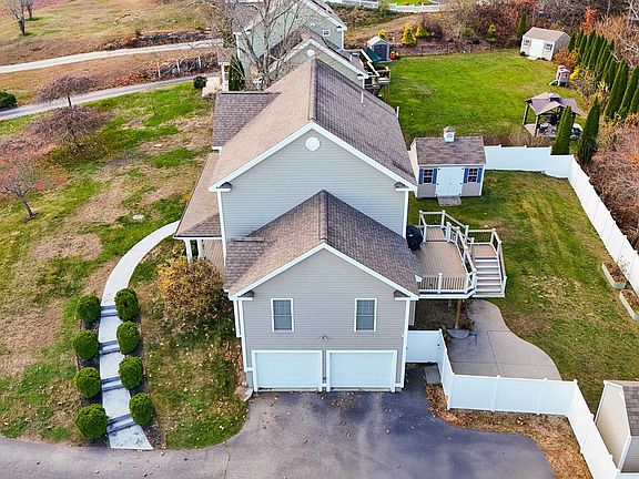 Welcome to 24 Pond Road in Raymond, NH! Located in a prime area, this well-maintained home offers both comfort & convenience, with restaurants, shopping, and scenic trails just moments away. As you approach, you’re greeted by a charming farmer’s porch that is perfect for relaxing. Inside, the inviting entry with hardwood flowing to into the dining room, opens to an inviting eat-in kitchen equipped with stainless steel appliances, a central kitchen island and ample cabinetry. The spacious family room features vaulted ceilings and a cozy gas fireplace. The first floor also offers a half bath, a convenient pantry and a laundry area. Off the kitchen, a sliding door leads to a large low maintenance composite deck, ideal for entertaining and enjoying the serene, fenced-in backyard. Here, you'll find not one but two Reed’s Ferry sheds, a sizable patio, and raised garden beds. The property backs up to an expansive trail system, perfect for outdoor enthusiasts, with miles of trails to explore. Upstairs, the second level boasts three well-sized bedrooms, including a primary suite with a private en suite bath. A full guest bath serves the other two spacious bedrooms. The walkout basement offers ample storage and potential for future finishing, adding even more living space if desired. Plus, there’s a two-car garage for added convenience. Don't let this amazing home pass you by! Agents please review non public remarks.