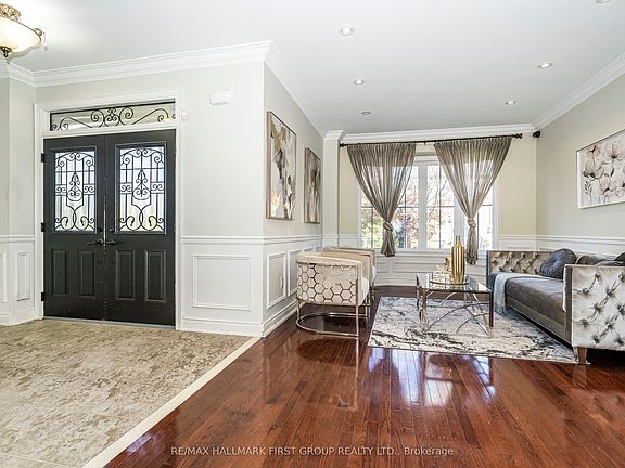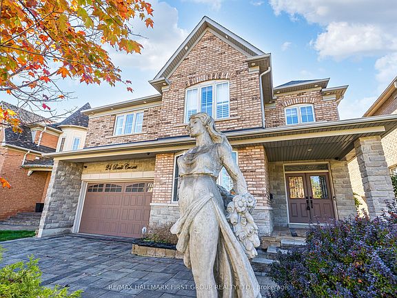 Welcome to this stunning 3,185 sq. ft. brick and stone detached home with a 2-car garage, located in a desirable North East Ajax community. This light-filled residence is loaded with upgrades, offering 4+1 bedrooms and 5 bathrooms, perfect for a growing family. The main floor boasts 9 ft ceilings, hardwood floors, pot lights, and elegant wainscoting throughout. An open-concept living room with a picture window flows seamlessly into a bright formal dining room. The upgraded kitchen features quartz countertops, stainless steel appliances, and ample cabinetry, opverlooking a cozy family room with a gas fireplace. A spacious main floor office with large windows and upgraded staircase with iron pickets complete this level. The second floor offers a generous laundry room with built-in closet. The primary suite includes a luxurious 5-pc ensuite and a spacious walk-in closet. The professionally finished basement includes a bedroom with a 3 pc ensuite, a recreation room, and ample storage, with potential for a separate entrance and conversion into an in-law suite or apartment. Exterior features include interlocking around the home, a fully fenced backyard, and a family-friendly location just steps to French and English immersion schools, shopping, parks, and trails, with easy access to Hwy 401, 407, Taunton Road, and GO Transit. This beautifully upgraded home offers the perfect blend of space, style, and convenience in a safe, family-oriented neighbourhood.