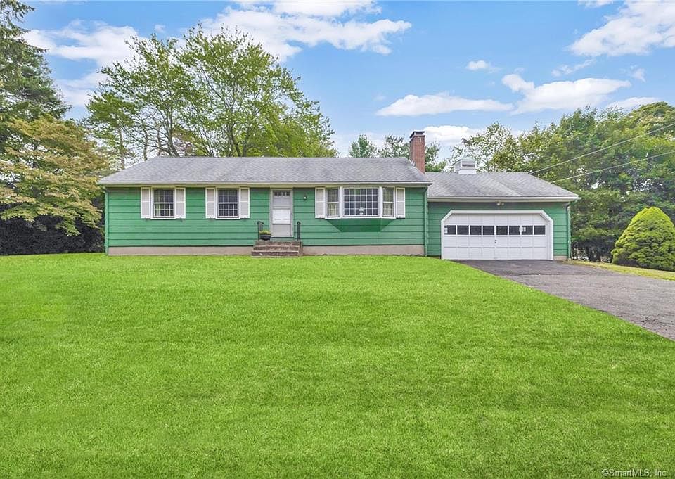 Single-level-of-Living, 1144 sq. ft. Ranch located in East Windsor. Situated on 0.61 acres, this home offers a private parcel with easy access to shops, Rt.5, and Rt.91. A hardwood-floor front entrance gives way to fireplace-equipped Living room with front-facing, Bay window. The rear-facing eat-in Kitchen has a double sink and plenty of cabinet space. The hardwood is continued through the main hallway and is included in the 3 Bedrooms. The main level also includes a tiled, full bath. The grounds are lush and include mature, property-lining trees, a shed, greenhouse, and a level backyard. 2-car Garage with rear entrance. C/Air.