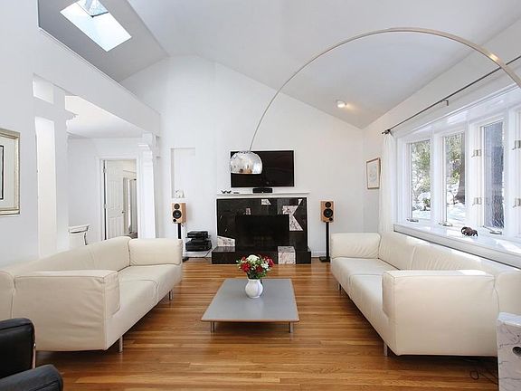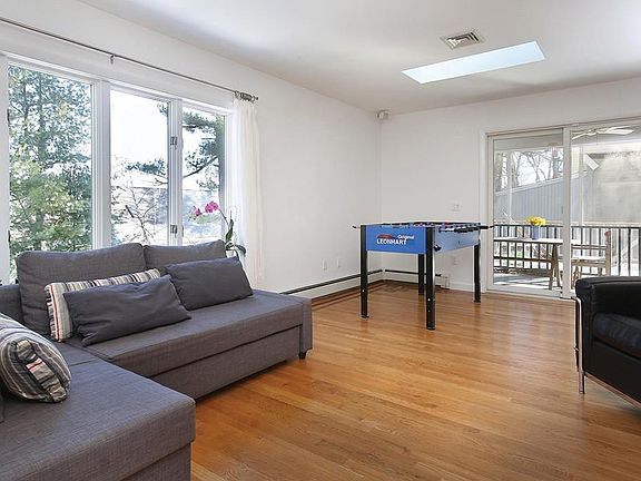 Sophisticated, contemporary mid century-style home in coveted Newtonville location. The first level offers an open floor plan for today's living. There is a living room with fireplace, open dining area, family room and kitchen with granite and stainless steel appliances. This welcoming home offers abundant natural light from skylights, and banks of windows. Hardwood floors on first and second level.(3 steps up to second level from first floor) Second level offers a Master bedroom with spa-like four piece bathroom, walk-in closet, and additional closet space. Two other bedrooms are spacious, with good-sized closets as well as another updated bathroom with double vanity. The walk-out finished lower features a bedroom, playroom and full bathroom with a private entrance, ideal for home office or guest suite. Two car garage. Central Air. Minutes to commuter rail, shops and Newton North High School.