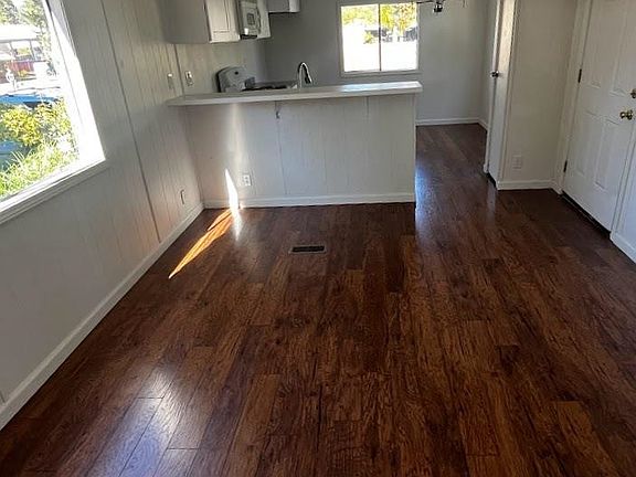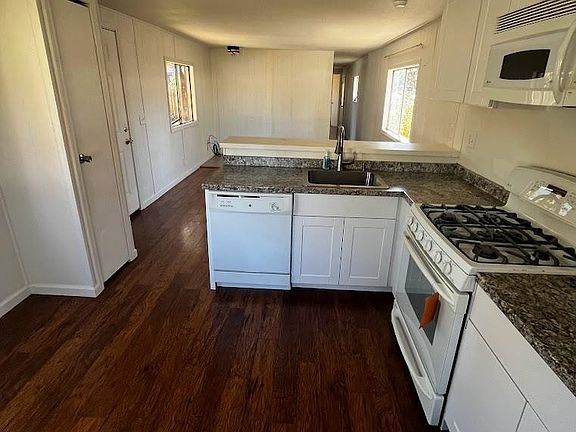 Step inside to discover brand new laminate flooring that extends seamlessly throughout the entire home, offering a fresh, contemporary aesthetic and easy maintenance. The home boasts a well-designed layout featuring two comfortable bedrooms and one full bathrooms.. Enjoy consistent warmth and comfort with a newly installed forced-air propane furnace, ensuring efficient heating during cooler months. The roof has been recently re-sealed, providing enhanced protection and peace of mind for years to come. A small fenced yard awaits your green thumb and yard pride. The kitchen has been thoughtfully updated with a new dishwasher and contemporary countertops, making meal preparation and entertaining a delight. Both the interior and exterior of the home have received a fresh coat of paint, creating a bright, welcoming, and move-in ready appearance. The monthly space rent is $595.92, which conveniently includes the water and sewer fee of $60.92, simplifying your monthly budgeting. Prospective residents are required to secure approval through a Park application process before any offer can be made. This ensures a harmonious community environment for all residents. This charming and extensively updated home offers a fantastic blend of comfort, style, and practicality within a welcoming community setting. Don't miss the chance to experience its many advantages firsthand.