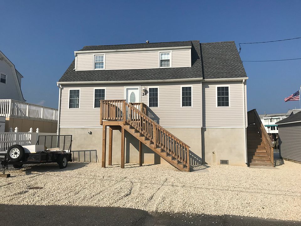Waterfront raised Cape on a desirable cul-de-sac approximately 10 houses from the Bay! 85 feet of bulkhead with large dock space and tons of storage on ground level. Master bedroom, kitchen, and full bath on top floor with beautiful views of the Bay! Living room and bedrooms on first floor entry level. Central air conditioning, hardwood floors, and two-level deck (including sun deck) - perfect for entertaining!
