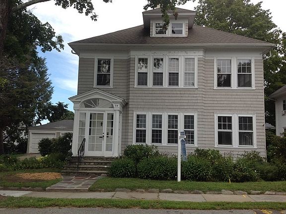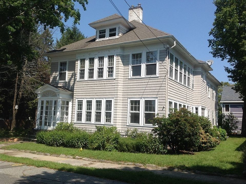 Beautiful classic home in premier downtown location. Walk downtown to shops, banks and library. Custom built in 1930. Step in to welcoming vestibule. Door to front foyer with guest closet. Living room w/fireplace flanked by built ins with leaded glass, boxed beams, wainscoting and is open to 19ft sunroom that could be divided Dining room with box beams and full wall of built ins. Older kitchen has walk-in pantry and washer dryer hookups for gas or electric. there is a side mudroom w/ closet. One of the bedrooms boasts 2 closets w/ storage drawers, the other has access to old porch. Second floor has fully applianced kitchen and sewing room off living room. Unfinished walkup attic with 2 sets of double windowed dormers. Newer gas boilers and hot water heaters. 2 stall garage has new windows. House needs painting throughout but well worth the effort Home includes an undersized contiguous lot with separate tax bill. Could easily be used as a single. Endless possibilities here.