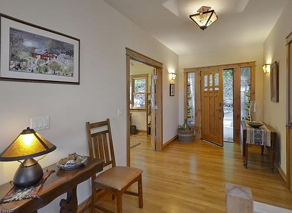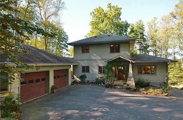 Striking Arts&Crafts contemporary w/expansive long range mountain views.This custom designed home features finely crafted finishes from wood harvested on site, including white oak front door w/stained glass sidelights & open hickory staircase.Gourmet kitchen boasts hickory cabinets w/walnut finishes, dual fuel stove, generous center island & pantry.Exceptional living & entertaining spaces flow beautifully to covered porch & ipe wood deck w/fireplace & spa overlooking mountains & stream.Must See!