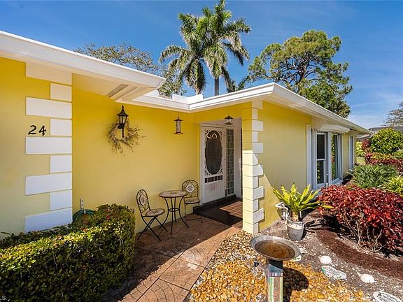 A mile away from iconic 5th avenue and two miles from the Naples downtown beaches! Unique opportunity to own a charming single-family house situated near the prestigious Royal Harbor and between Naples Bay Resort, Windstar on Naples Bay and the Bayshore art district. Rivard Villas is a small development of 20 single family homes. This property is 1 of only 8 lots with extra space (one and a half lot). It is situated at Cul-de-sac for more privacy. It has 2 bedroom/2 Bathrooms split floor plan. The house was fully renovated and remodeled in September 2024 with high-end kitchen features: quartz countertops and backsplash throughout, drinking water filtration system Everpure H-300, 30” “Silgranit” Italian kitchen sink and faucet Blanco, flush-style (cabinet-depth) microwave Whirlpool with outdoor air ducted vent, ZLINE 30” Alpine Series Convertible Range hood (ALO70IS-30) air ducted outdoors, LG built-in cooktop and oven, LG dishwasher, LG French doors refrigerator, and 16 bottle Dual Zone wine cooler. Both the range hood and the microwave fan are air-ducted to a vent outside the house. This allows for a second portable cooking station under the microwave. The upgraded bathrooms include brand new Delta and Moen fixtures, privacy-glass sliding doors, one Kohler “Memoirs” and one Kohler “Veil with Cleansing Seat” (bidet) toilets, quartz countertops, and shower tiles to the ceiling. The house is equipped with a new LG tower ventless washer and dryer (10yrs warranty) in the prime bathroom. There is a new water Heater installed 6/2025t (Rheem Gladiator). The roof was replaced in 2018. The living room overlooks the luscious extra-large lawn through a large bay window. All windows were replaced in 2020 with Window World high-impact hurricane glass graded and they have hurricane shutters. Screened double-panel sliding door CGI Santinel 4025 opens to the back patio. The back garden includes an avocado tree. The living room is an open concept design that includes a large island with cabinets and L-shaped kitchen. The prime suite has two separate walk-in closets, and a double sink in the prime bathroom. The second bedroom features a full-wall length closet with mirror sliding doors. New ceiling fans (Fanimation MAD8530MW, Minka Air Pinup F862L-WHF) installed throughout the house. The garage is extra wide allowing for a second washing station. The house needs new flooring and two feet of wall. All electric outlets were replaced in June 2024. The property is offered AS IS.