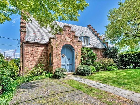 National Register of Historic Places, Wayside Chapel, a Flemish Revival design circa 1867-1869 was built as a chapel, of brownstone & features a steeply pitched slate roof. Baronial parlor has a soaring 17' volume ceiling & is approx 23' x 15'. It has a 6' wide wood burning fireplace, massive exposed chestnut "X" trusses & four tall leaded glass French doors opening to an enclosed riverside solarium. The staircase leads to a delightful minstrel gallery. The formal dining room has a lovely leaded glass window. Modern kitchen. Most windows have been replaced with Marvin windows. Ample master bedroom & en-suite bath on main level (could be a den) opens to a rear gallery overlooking the Hudson River & sandy beach. Upstairs are a guest room, a study which could double as a bedroom featuring an arched entry corridor and another full bath. Hardwood floors. Note: Sale is conditioned upon court approval.