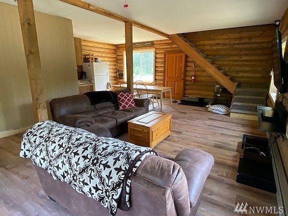 Enjoy this rustic cabin along a wild and scenic stretch of the Methow River in the Edelweiss community near Mazama. Walk down the bank to a private sandy beach and your own swimming hole. Garage area was converted into living space but garage doors remain operable. All new flooring, cabinets, windows. Sale also includes parcel 4911080001 .48 acres.