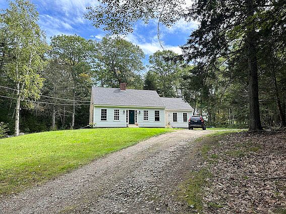 Thoughtfully redesigned center chimney cape: all the appeal of an early cape yet all the conveniences and amenities of today's living! A labor of love from 2020 - 2023. Sitting proudly upon a hill the nine over six windows and recessed side light front door just say ''welcome'', follow the classic cape cod siding of natural shingles and painted clapboards while rosa rugosas further compliment this treasured style. Enter our light -filled open -concept interior; clean and crisp yet featuring pure charm! The kitchen draws one into its design of custom cabinets, pantry, high end fisher paykel appliances. Everything is carefully planned to maximize the space. The dining area mimics the cabinetry to combine the appeal and centralize the backside of the fireplace. Oh and the living space exudes warmth and comfort - no home is complete without a wood burning fireplace adorned by a refinished, architecturally salvaged mantel. A lovely staircase allows easy entrance from both dining and living areas and extends to pleasing nooks and crannies, full bath and two ample bedrooms further enhanced by separate seating areas. All this and a full basement with high tech water treatment and heating systems.
