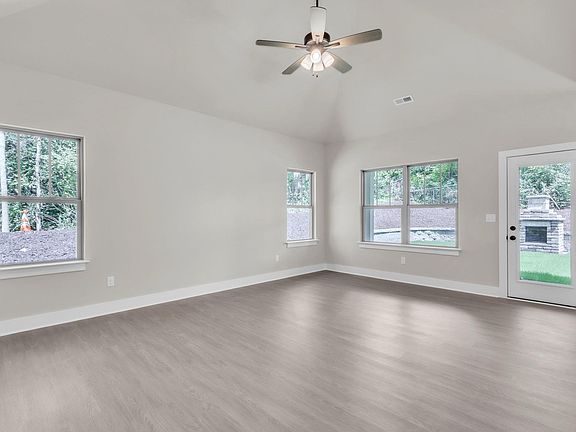 Outdoor fireplaceLarge islandWalk-in pantryArchitectural shinglesOpen concept floor planLg stainless appliancesCovered patio