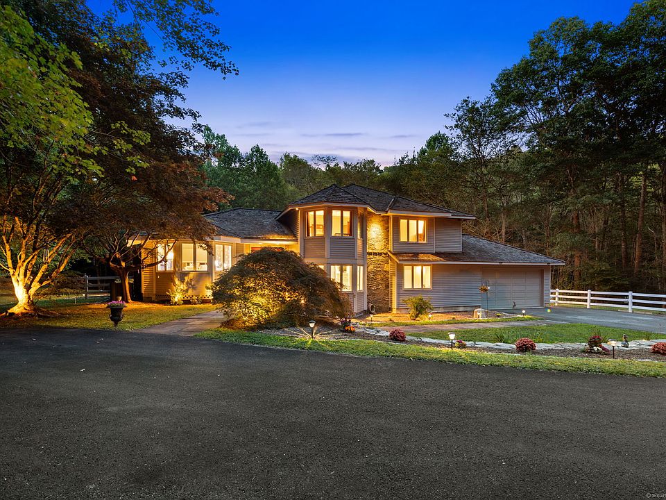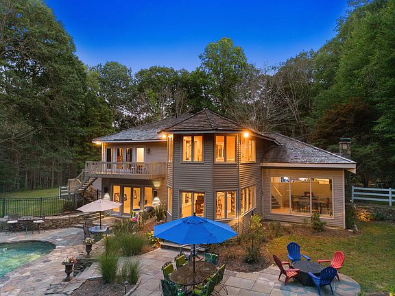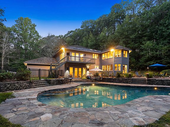 Tucked away in the picturesque hills of Litchfield County, right on the desirable Woodbury/Roxbury line, this stunning Colonial-Contemporary residence offers an unparalleled blend of privacy, natural beauty, and modern comfort on nearly 10 acres of pristine land. Surrounded by mature trees, vibrant plantings, and lush greenery, the property is enhanced by the gentle sounds of Transylvania Brook flowing just beyond the backyard, creating a truly tranquil and secluded setting. A long, paved, and beautifully lighted driveway welcomes you to this distinctive home, where a grand double-door entry opens to a spacious foyer complete with a unique indoor water feature. Inside, the home features three generously sized bedrooms, two and a half fully renovated bathrooms with luxurious Italian marble tile, and recessed lighting throughout. The thoughtfully designed layout includes a cozy lower-level family room with French doors that lead out to an expansive stone patio and a heated inground Gunite swimming pool, perfect for relaxing or entertaining. A bright four-season sunroom offers sweeping views of the surrounding landscape, while a dedicated office provides an ideal space for working from home. The impressive primary suite is a retreat in itself, featuring a walk-in closet, Jacuzzi tub, private balcony overlooking the pool, and a bonus room that can be customized to suit your needs, whether as a reading nook, home gym, or nursery. Additional highlights include a fenced-in yard, outdoor sheds, central air, a whole-house generator, an oversized two-car garage, and a large unfinished basement with endless potential. Whether you're looking for a full-time residence or a weekend escape, this home offers the perfect balance of elegance, comfort, and natural serenity. A rare find and a must-see for anyone seeking peaceful country living with modern amenities.
