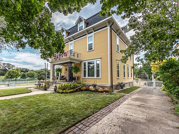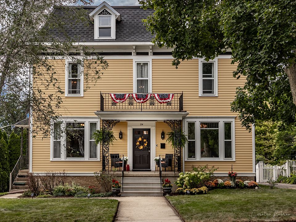 24 Rugby Place, showcased on the Historic Elgin House Tour in 2022 and 2006, overlooks 10-ac Channing Park. It is a fully restored Second Empire Victorian home on one of the most coveted streets in Elgin. Built in 1891, it has all the charm of yesteryear coupled with 21st-century amenities. This 4-bdrm, 2.5-bth home features gorgeous hardwood floors, 10' ceilings, a wood burning fireplace, built-in bookcases, and custom wainscoting. The timeless kitchen has cherry cabinets, stainless steel appliances, granite countertops, and a beautiful built-in china cupboard. The master suite boasts a seating area, walk-in closet and ensuite bathroom. An English basement and spacious attic provide additional storage or possible added living space. A mudroom with ample storage provides access to the flagstone patio and private landscaped yard with a private garden and detached 4-car garage. Restoration work includes fully updated electric and plumbing, 2-zone HVAC, a security system and central vacuum. The roof on both the house and garage are new (within the past 4 years), as are the 2 HVAC units and hot water heater, the front steps and the gas range. This must-see, one-of-a-kind "brand new" Victorian is a short walk to Metra, schools and downtown Elgin.