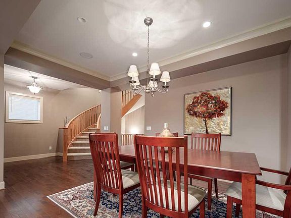 Welcome to this beautifully appointed 3,785 sq ft estate home nestled on a quiet street in the heart of Aspen. This elegant 4-bedroom, 5-bath residence offers timeless sophistication and modern comfort, surrounded by top schools, shopping, and recreation. Step into a bright and inviting main level featuring a grand curved staircase and rich hardwood floors that carry throughout. Entertain effortlessly with a formal living room, elegant dining area, and a warm, welcoming family room centered around a cozy gas fireplace. The gourmet kitchen is a chef’s dream—showcasing granite countertops, a large island with seating, premium stainless steel appliances, and a sunny breakfast nook that opens onto a private backyard. Enjoy outdoor living with a covered deck, fenced yard, sprinkler system, and mature landscaping offering privacy and tranquility. Additional highlights include central air conditioning for year-round comfort and a spacious double garage. Upstairs, the luxurious primary suite features a double-sided fireplace, expansive walk-in closet, and a spa-inspired ensuite with a soaker tub and multi-jet shower. Two additional spacious bedrooms, a full bath, and a convenient upper laundry room complete this level. The third floor offers a versatile bonus loft with a skylight, wet bar, fireplace, balcony, and a powder room—ideal as a home office, library, games room, or studio. The fully developed basement is designed for relaxation and functionality, featuring in-floor heating, a large recreation area, fourth bedroom, and a full bathroom. Located just steps from walking paths, playgrounds, and green spaces, this home also offers quick access to Webber Academy, Rundle College, Calgary Academy, and top-ranked public schools. Minutes from Aspen Landing Shopping Centre, you’ll find boutique stores, restaurants, coffee shops, and essential services. Recreational opportunities abound at Westside Rec Centre, Canada Olympic Park, and nearby golf courses. With easy access to downtown via Bow Trail, 17th Avenue, or the 69th Street LRT station, plus a convenient route to the mountains, this is Aspen living at its finest.