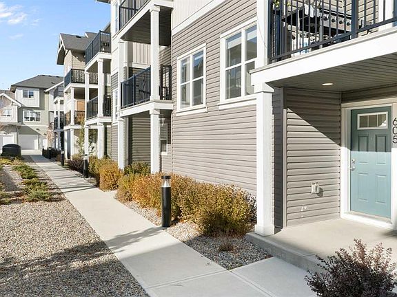 Welcome to The Jasper, a stunning top-floor stacked townhouse that offers the perfect blend of style and function. This unit features over 1250 sq ft of thoughtfully designed living space, with most of the layout conveniently situated on a single level. Step inside and up to the main floor and you will discover an open-concept living area with a full kitchen that's a home chef's dream. The kitchen boasts elegant quartz countertops, soft-close drawers, and stylish two-tone cabinets highlighted by pendant lighting. An adjacent, flexible space is perfect for a spacious dining area or a home office. This home has two large bedrooms and two full bathrooms. The primary bedroom is a true retreat, featuring a massive walk-in closet and a luxurious 4-piece ensuite. A spacious laundry room adds to the convenience.This unique floorplan is designed to feel like a modern apartment but with the added benefits of a main floor storage/flex area and direct access to an oversized, extended single-car garage.This home is perfectly situated to offer the best of both convenience and community. It's located right next to a future school site, with transit options directly at your doorstep for effortless commuting. Enjoy a short two-minute walk to Bow Valley High School, and a quick five-minute trip to the Spray Lakes Sports Centre for all your recreational needs. For bigger city amenities, you're only 20 minutes from South Calgary, and the mountains are within easy reach, with Canmore just a 40-minute drive away.