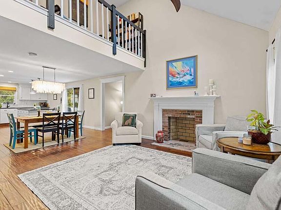 Hunter Hill Estates! This dazzling 3-bedroom Contemporary Cape is set on a generous lot bordering conservation land. A great house for entertaining, this home features an open floorplan with tastefully updated kitchen, a massive island and plenty of counter space. Fireplaces can be found in both the cathedral living room and vaulted family room. Entire first level is enhanced by distinctive teak flooring. Upstairs are 3 bedrooms, including the en-suite primary which easily supports a king-size bed. Even MORE living space in the walkout lower level (not included in the square footage) including a newly finished room for guests, home office, or den, and another room currently used as a gym. For outdoor living, this home has it all! Large Azek deck is perfect for dining and entertaining and includes a gas grill connected to a natural gas line. After dinner, enjoy a roaring fire on the stone patio complete with built-in firepit. Or just relax in the private, fully fenced yard. Mechanicals include forced hot air heat by natural gas, central air, and generator hookup. NOTE: Half bath on first level was once a full and should be easy to revert back. Don't miss this one!