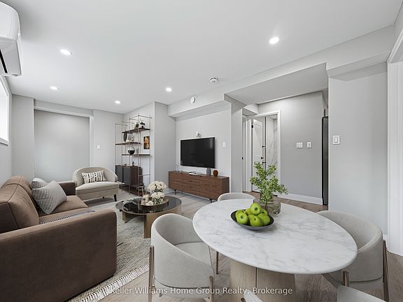 Discover the charm of this spacious two-bedroom walkout lower-level apartment. It can barely be called a basement apartment. With absolutely no stairs to navigate, carpet free, custom blinds and bright oversized windows, you will swear you are living on the main floor. Extra time and care has went into designing this home to ensure extra sound proofing and ultimate heating and cooling comfort that you are in full control of. Coupled with a high efficiency heat pump it will also be incredibly affordable. Located minutes from downtown Guelph, walkable to groceries and access to bus routes you won't even need a car! However this unit does have space for two moderate sized vehicles. Also included is your own 2-in 1 laundry unit and full 4 piece bathroom with tub.