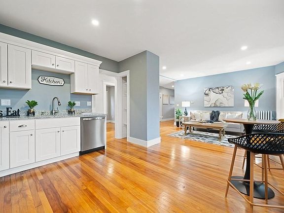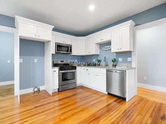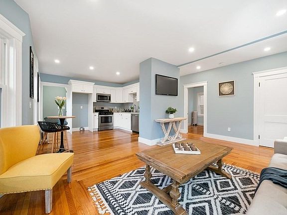 Modern, updated, 1st floor apartment over 1,000 square feet with 3 beds and 1 bath. The bedrooms are ample with plenty of closet space. Open floor plan creates a bigger feel. New kitchens with White Shaker cabinets, granite countertops and stainless appliances. The bathroom had a facelift and offer new tiled baths with new tub, new vanity, new toilet. The entire interior has beautiful new refinished hardwood floors, fresh paint throughout, new lighting fixtures, new plumbing and wiring throughout, in unit laundry, Shared common yard, great for summertime cookouts! On-street parking. Tenant pays utilities. First month, security deposit and Broker Fee required. Tenant pays utilities. Water & sewer included. First month, Security Deposit and Broker Fee required