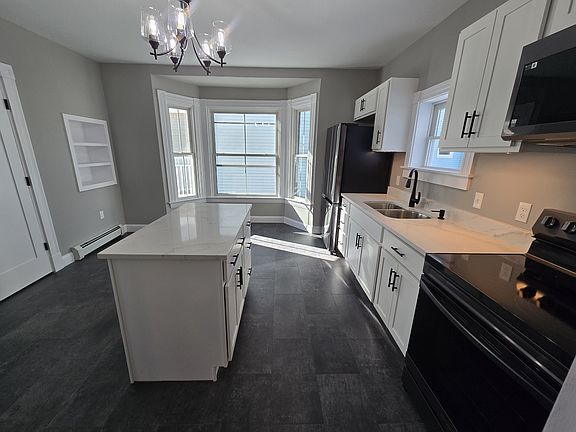 Newly renovated 1st floor apartment in a 1900 built building. this unit features white cabinets with real quartz countertops, full Bathroom with attached laundry room, master bedroom.with a huge custom built walk-in closet, and a covered porch. off street parking for 2 vehicles with new paved driveway. Owner: Plowing, Heat, Maintenance, Lawn care, Cold Water, Sewer, Appliances (washer and dryer not included) Tenant: Shoveling steps to their unit, Hot water is electric, Electricity, Cable, Internet