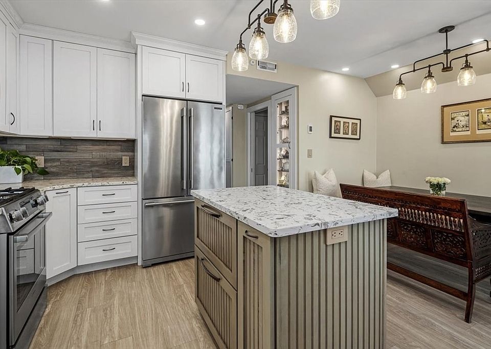 - Features: Closet, Flooring - Laminate, Dining Area, Pantry, Countertops - Stone/Granite/Solid, Kitchen Island, Cabinets - Upgraded, Exterior Access, Open Floorplan, Recessed Lighting, Remodeled, Slider, Gas Stove, Lighting - Pendant, Lighting - Overhead