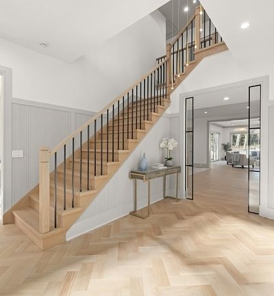 Gas fireplaceTimeless architectureGuest suiteLower levelMarble spa bathRefined modern livingHerringbone white-oak floors