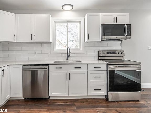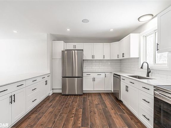 RAISE YOUR EXPECTATIONS WITH THIS MOVE-IN READY BUNGALOW! Welcome to 24 Shannon Street, a beautifully renovated raised bungalow in prime Southeast Orillia, just a 5-minute stroll to Kitchener Park, Maple Leaf Park, and Lake Simcoe! This turn-key gem offers unbeatable convenience with easy access to amenities, shopping, schools, a rec centre, a hospital, downtown, parks, and transit. The fenced backyard features a new side fence, an updated full-size covered deck, perfect for entertaining, and a newly paved driveway for added curb appeal. Step inside to timeless finishes, including upgraded luxury vinyl flooring throughout, a neutral palette of paint tones, and pot lights. The open-concept kitchen boasts a large peninsula with ample seating, granite counters, subway tile backsplash, a separate pantry, new stainless steel appliances including a fridge, stove, dishwasher, and over-the-range microwave, white cabinetry, modern black hardware, and a walkout to the back deck. Enjoy two spacious bedrooms on the main floor and a versatile finished basement with a large rec or games room and an additional bedroom. Both modern bathrooms have been newly updated, with the main bath offering a tub/shower combo, modern glass door, and black fixtures, while the basement bath includes built-in shelving, a contemporary vanity, and a stand-up glass shower. Added improvements include fresh paint, new trim, modernized interior doors and hardware, a renovated staircase with a new railing, and a newer air conditioner, making this #HomeToStay a must-see!